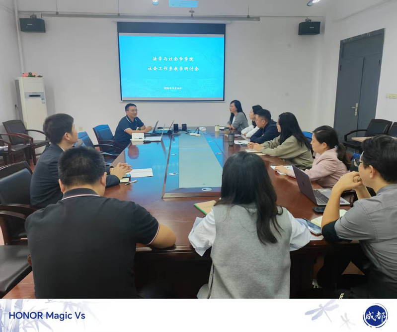 2025年10月16日,法学与社会学学院社会工作系召开教学研讨会,系全体教师齐聚一堂,围绕教学能力提升与经验交流展开深入研讨。会议由母艳春老师主持。