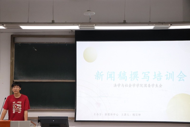 今天的培训内容为新闻稿撰写与活动拍摄,在团委学生会的工作中,这两项往往有着紧密联系,共同培训可以加深部员对工作的理解,高效提升部员工作能力。新媒体中心副部长杨昊坤在新闻稿技能培训中从基本要求、五大部分、结构逻辑和写作要点四个部分进行详细讲解,阐述了新闻稿的基本格式和底层逻辑。在随后的活动拍摄培训上,杨副部长通过列举不同场景并配出图片,清晰明了的讲解各种活动中需要拍摄的照片,引起了部员们对拍摄角度、点位及技巧等关键要素的高度重视。部员们认真进行了笔记。随后团委副书记郑茹灵对培训内容进行了提问同学们积极回答,准确复述了培训要点,纷纷表示将规范自己新闻稿的书写格式与拍摄流程,对杨副部长的培训给予高度好评。