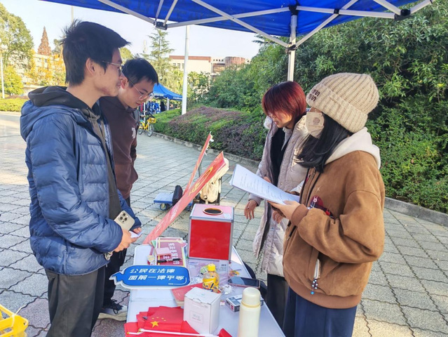 为引导同学们了解宪法精神、增强法治意识。12月4日,法学院(知识产权学院)在明德广场开展宪法日宣传活动,吸引众多同学积极参与。
