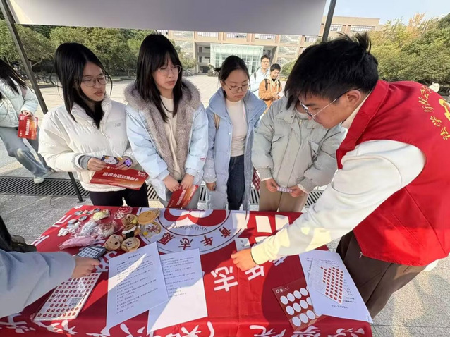 活动精心设置了法律翻翻乐、法律闯关大作战、法律名词猜猜乐、法律视力表组字四大趣味游戏环节。参与者通过记忆配对“负担行为”、“义务行为”等法律同义词,解答案例判断题与情景应用题,根据表情组合猜测“知识产权”、“自首”等法律术语,识别“诈骗”、“民法典”等法律词语。参与者通过游戏积累积分,可兑换玻璃杯、手机支架等对应奖品。志愿者们针对不同法律基础的参与者采用不同讲解方式,用通俗化、场景化的语言拆解专业法律知识,在轻松愉悦的互动中帮助同学们消除法律认知盲区。活动期间,志愿者们身着统一队服,始终保持热情饱满的状态,主动引导同学参与活动、耐心解答疑问,同时有序维护现场秩序、记录活动精彩瞬间,确保各项环节高效推进。