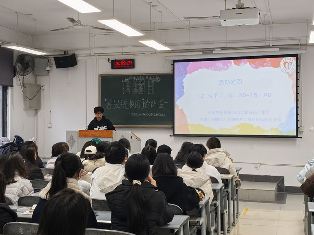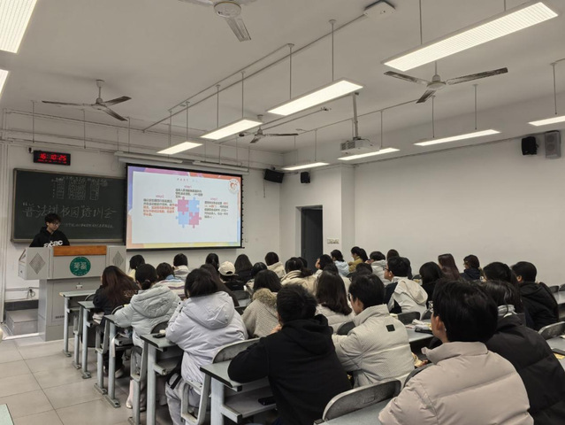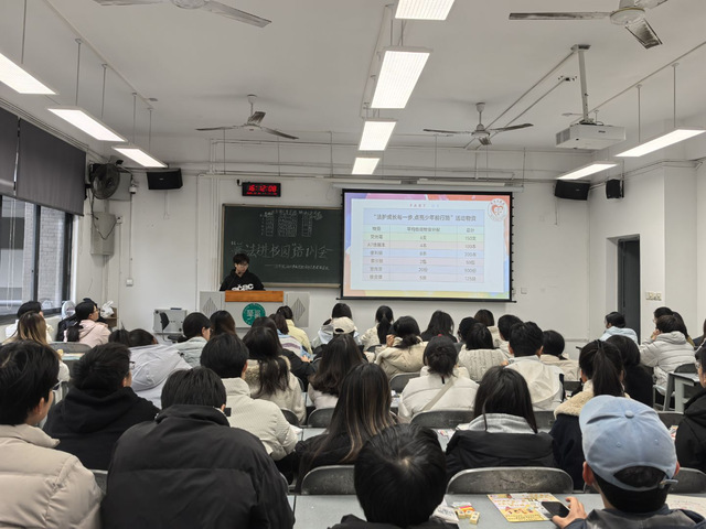 培训会由法学院(知识产权学院)青年志愿者服务队队长吴羽聪主讲,他将工作拆解为活动前、中、后三个阶段,并逐一讲解各阶段注意事项。他强调,活动前主讲人应熟悉普法内容,辅讲人需完成文件拷贝,志愿者们则需准时到达活动集合地点;活动中,主讲人需声音洪亮、举止大方,积极与学生互动,辅讲人负责发放奖品和拍摄现场照片;活动后,全体志愿者需共同整理活动现场,并在指定地点进行集合。培训会现场的志愿者们认真聆听并记录要点。