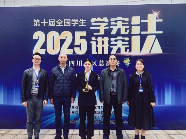 据悉,本届竞赛由四川省教育厅主办,旨在深入普及宪法知识、弘扬宪法精神、增强青少年法治观念。赛事活动的组织筹备得到了学校党委常委、副校长费凌教授及相关职能部门领导的关怀支持。学院精心组织,为参赛选手提供了系统的宪法知识复习与演讲技巧训练,为优异成绩的取得奠定了坚实基础。