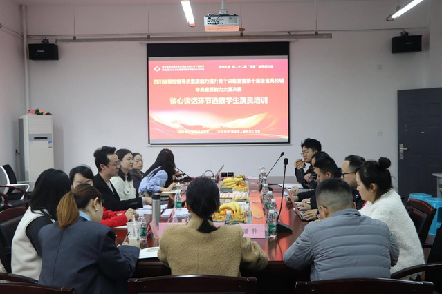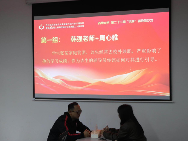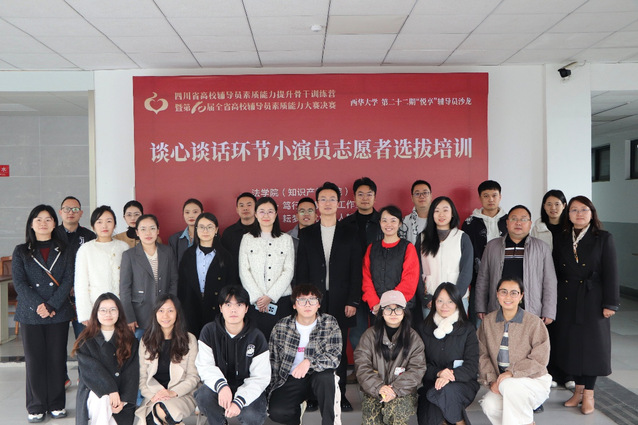 为保障四川省第十届高校辅导员素质能力大赛决赛谈心谈话环节顺利开展,11月11日下午,在西华大学党委学生工作部的统筹安排下,法学院(知识产权学院)联合“明德·笃行”辅导员工作室、“志合·梦”就业育人辅导员工作室,在6D-318组织开展第二十二期“悦享”辅导员沙龙暨大赛谈心谈话环节学生演员选拔培训活动,法学院(知识产权学院)党委副书记廖磊,成都中医药大学胡湘敏老师,成都工业学院武宇璇、黄子茵老师,成都纺织高等专科学校周瑶、蒋平老师以及校内师生代表等参与此次培训。